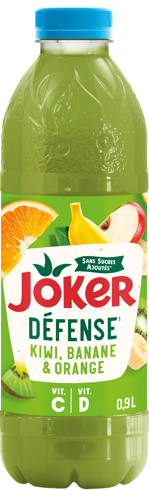 Joker Bénéfices Un délicieux mélange à base de kiwi, bananes et oranges, sans sucres ajoutés* et sans conservateurs (2). Pour se faire plaisir au quotidien! (1) Les vitamines C et D contribuent au fonctionnement normal du système immunitaire. Nos bananes et oranges sont issus de cultures plus durables (2).